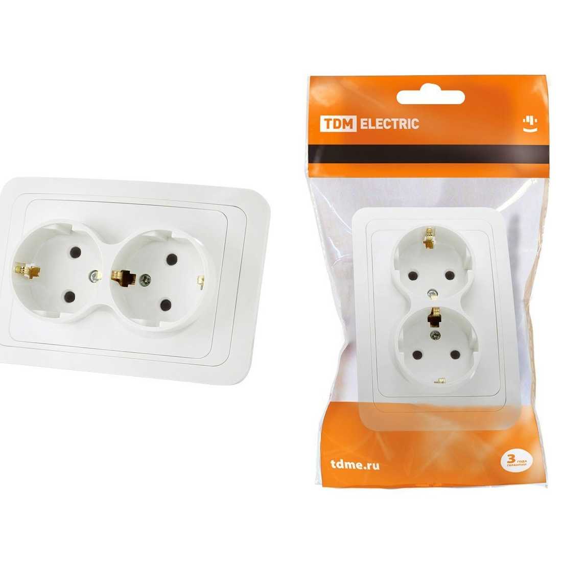 Купить в Бресте Розетка двойная 2П+З 16А белая Валдай TDM