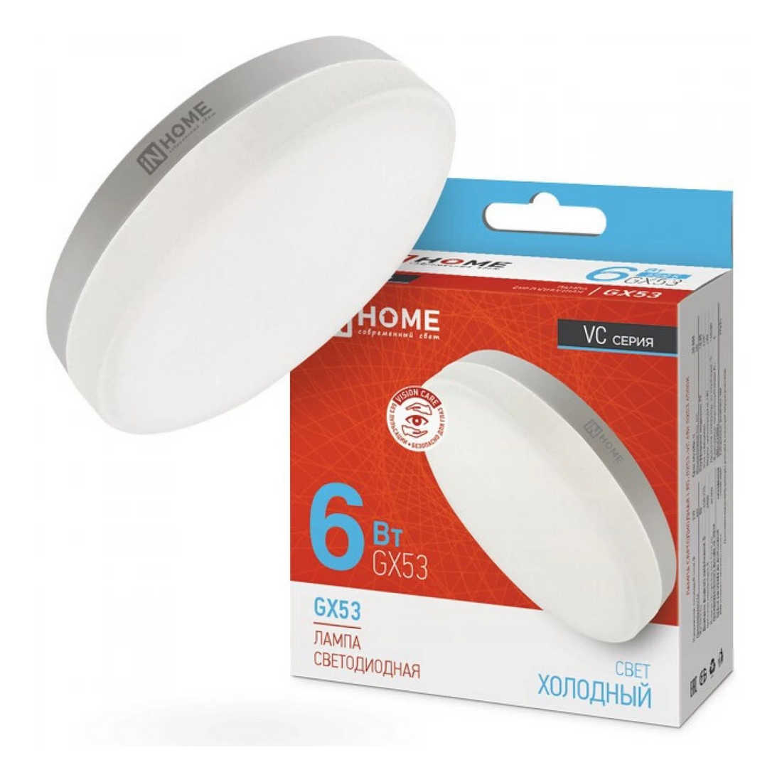 Купить в Бресте Лампа светодиодная LED-GX53-VC 6Вт 230В 6500К 540Лм IN HOME