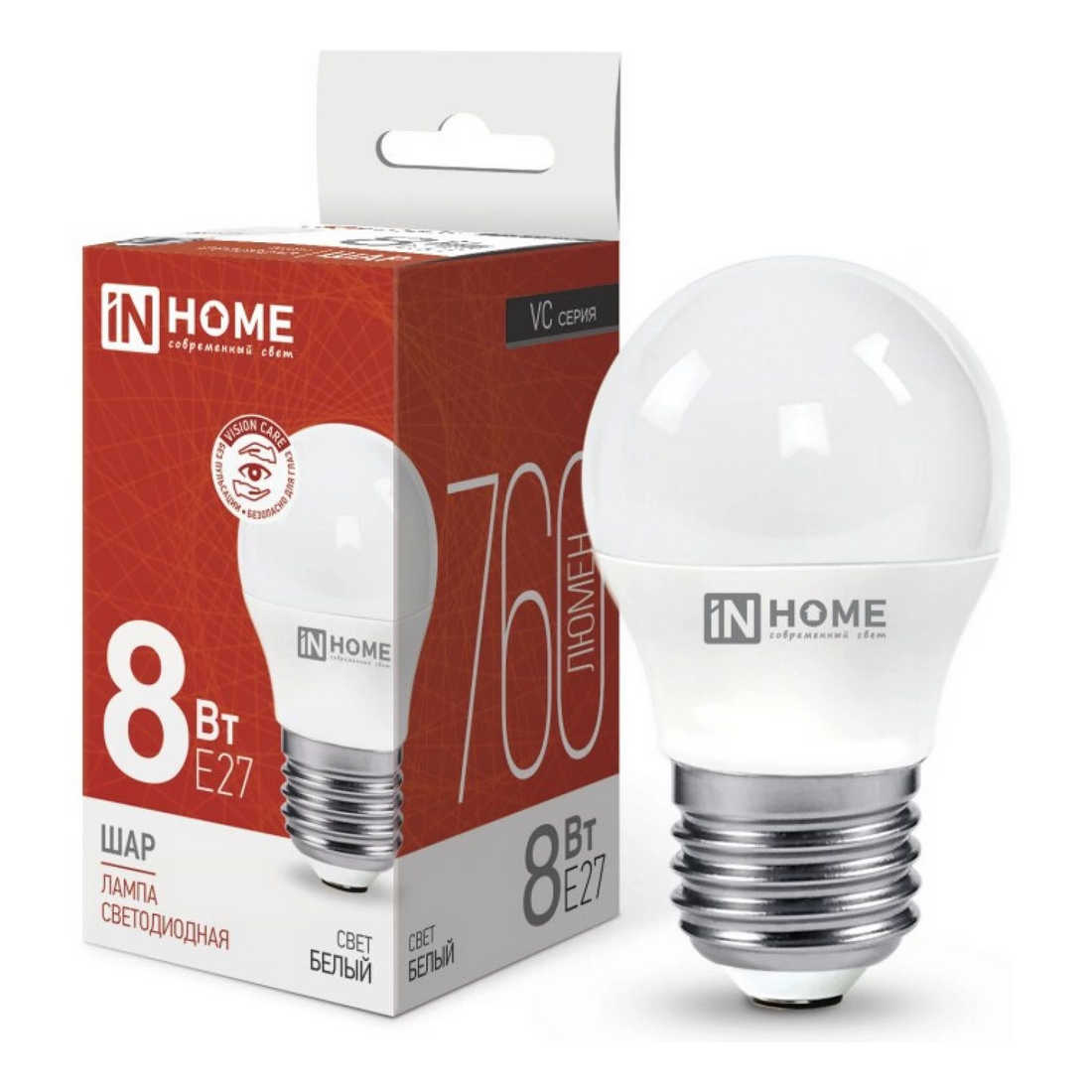 Купить в Бресте Лампа светодиодная LED-ШАР-VC 8Вт 230В Е27 4000К 760Лм IN HOME