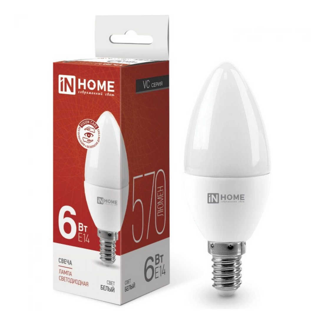 Лампа светодиодная LED-СВЕЧА-VC 6Вт 230В Е14 4000К 570Лм IN HOME