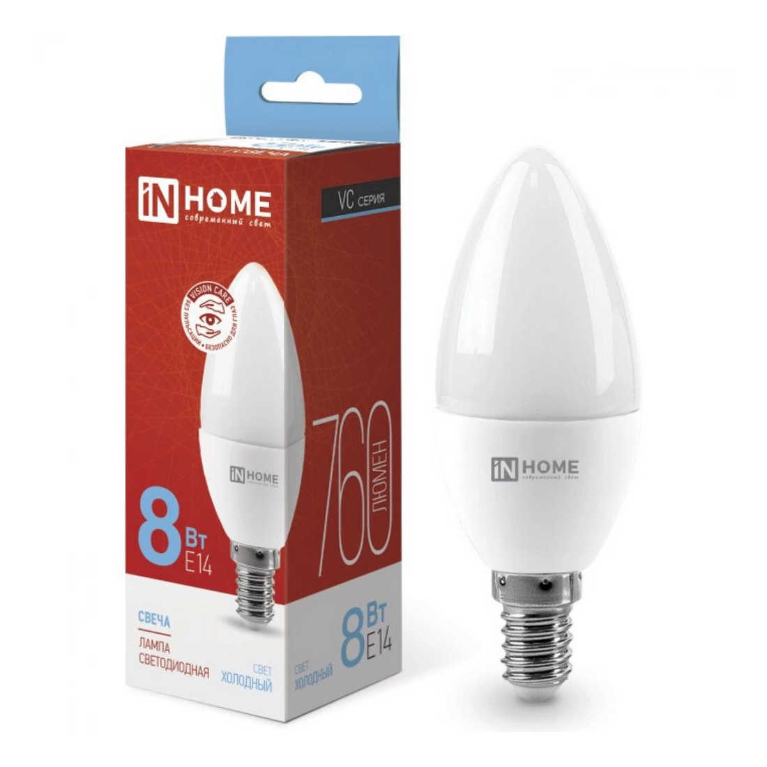 Лампа светодиодная LED-СВЕЧА-VC 8Вт 230В Е14 6500К 760Лм IN HOME
