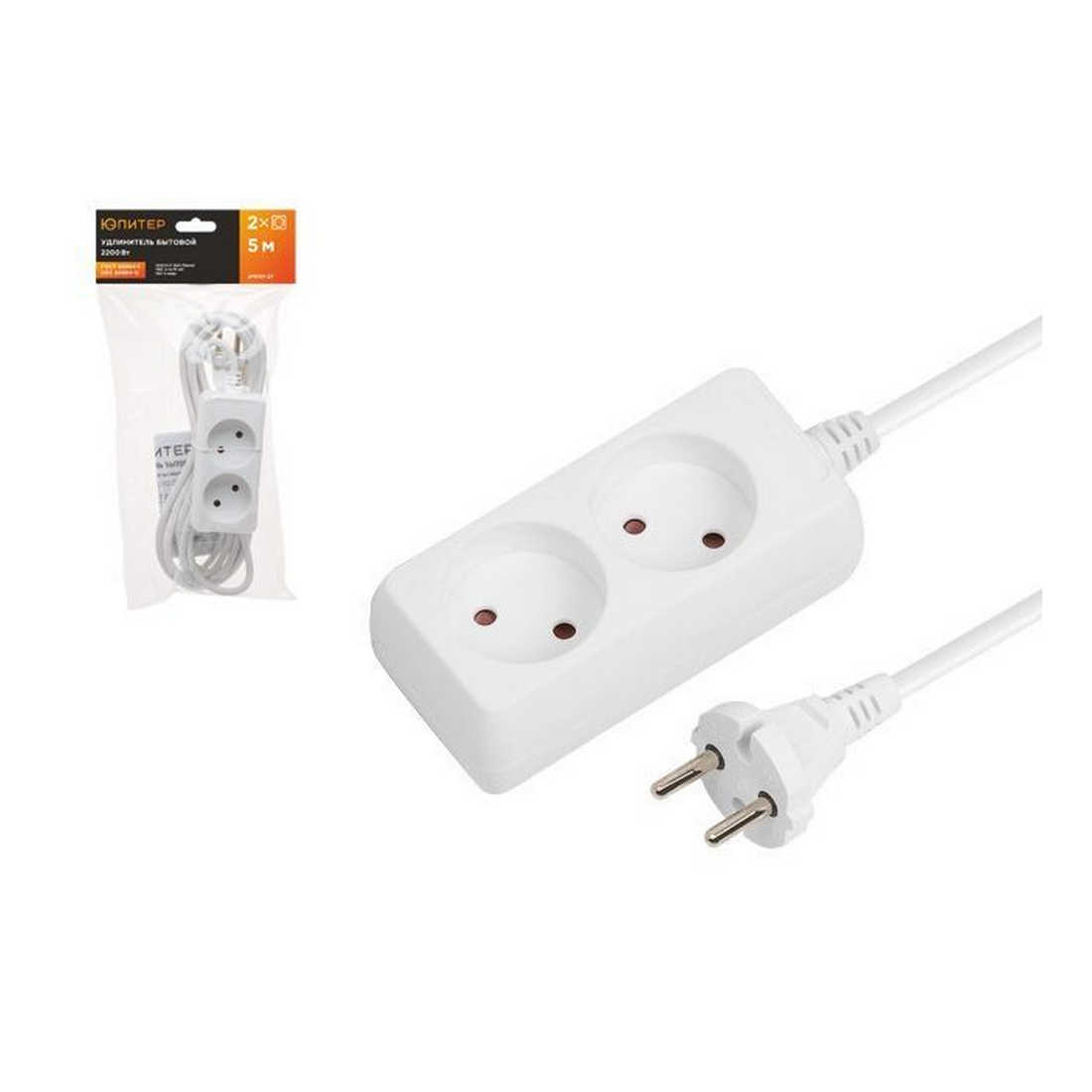 Удлинитель 5м (2 роз., 2,2кВт, б/з, ПВС 2х0,75) Юпитер (ЮПИТЕР) (JP8101-27)