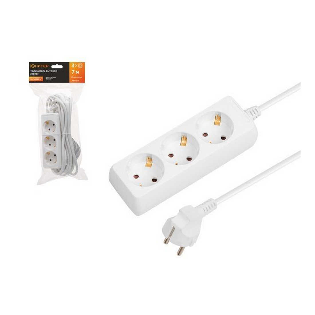 Купить в Бресте Удлинитель 7м (3 роз., 2,2кВт, с/з, ПВС 3х1) Юпитер (ЮПИТЕР) (JP8102-25)