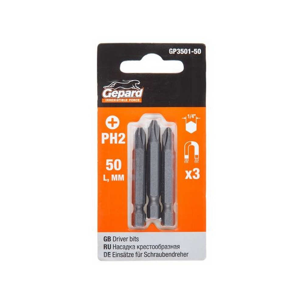 Насадка крестообразная PH2 50мм 3шт GEPARD (GP3501-50) (бита Phillips сталь S2 магнитная) (GP3501-50)