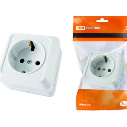 Розетка 2П+З открытой установки IP20 16А, белая «Ладога» TDM