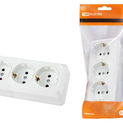 Розетка 3-х местная горизонтальная 2П+3 открытой установки IP20 16A белая «Ладога» TDM