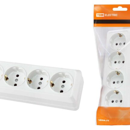 Розетка 4-х местная горизонтальная 2П+3 открытой установки IP20 16A белая «Ладога» TDM