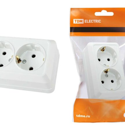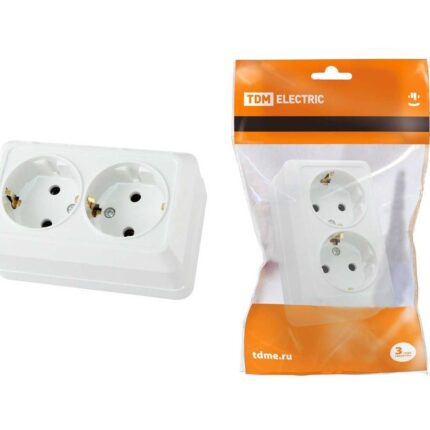 Розетка двойная 2П+3 открытой установки IP20 16А, белая «Ладога» TDM