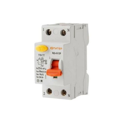 Выключатель дифференциальный (УЗО) ВД-63/2P 16А 30мА 6кА тип AС ЮПИТЕР (электромеханический тип) (JP7512-16)