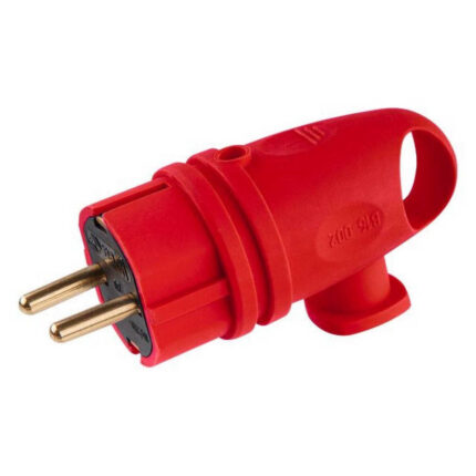 Вилка угловая с ушком (с/з, 16А, 250В) каучук, красная Юпитер (В16-002)