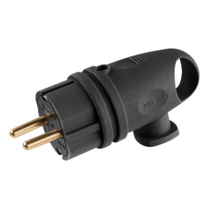 Вилка угловая с ушком (с/з, 16А, 250В) каучук, черная Юпитер (В16-002)