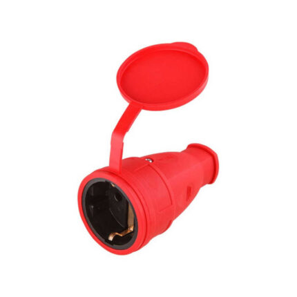 Розетка 1-ая переносная (с/з, 16А, 250В, брызг. защ.) каучук, красная Юпитер (РА16-005)