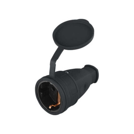 Розетка 1-ая переносная (с/з, 16А, 250В, брызг. защ.) каучук, черная, Юпитер (РА16-005)