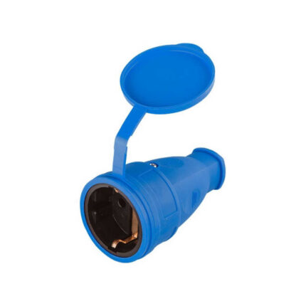 Розетка 1-ая переносная (с/з, 16А, 250В, брызг. защ.) каучук, синяя Юпитер (РА16-005)
