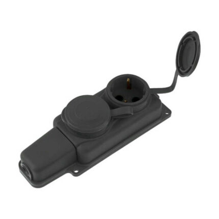 Розетка 2-ая переносная (с/з, 16А, 250В, брызг. защ.) каучук, черная, Юпитер (РП16-232)