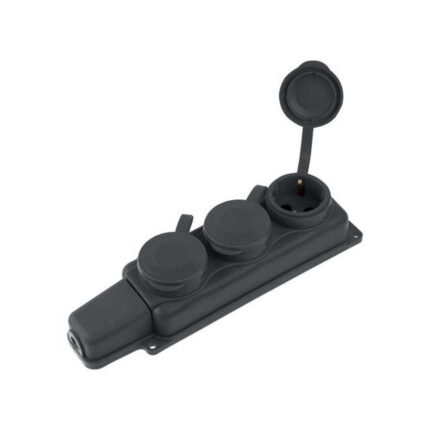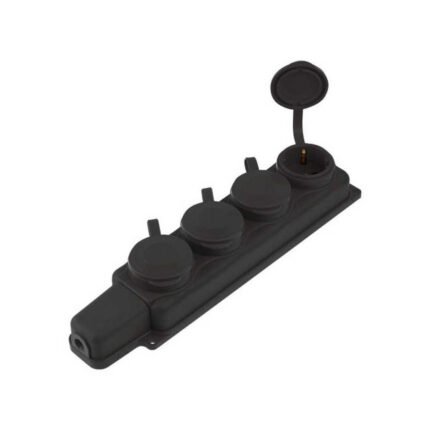 Розетка 4-ая переносная (с/з, 16А, 250В, брызг. защ.) каучук, черная Юпитер (РП16-432)