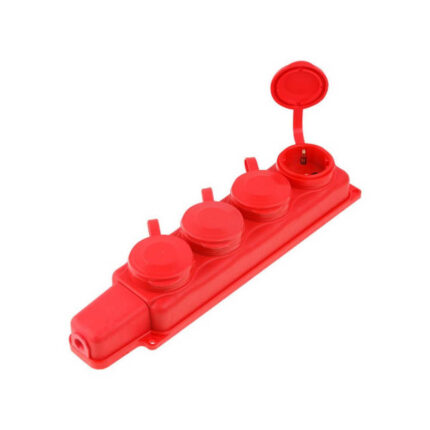 Розетка 4-ая переносная (с/з, 16А, 250В, брызг. защ.) каучук, красная Юпитер (РП16-432 К)