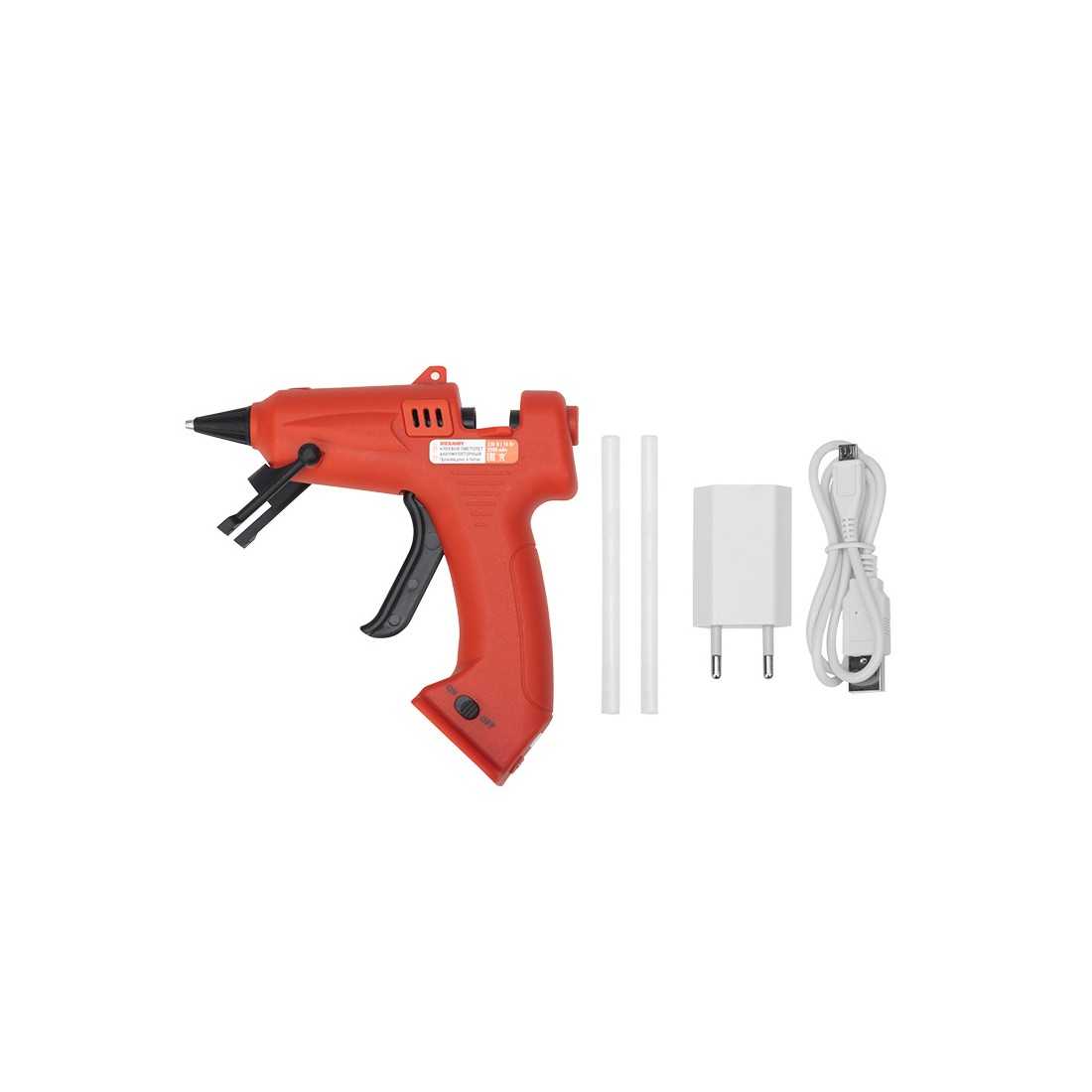 Пистолет клеевой на аккумуляторе предназначен для прочной фиксации поверхностей с помощью расплавленной клеевой массы.