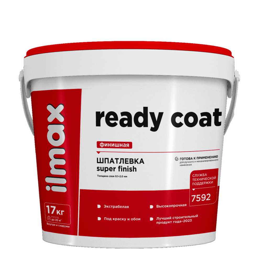 ilmax ready coat шпатлёвка финишная предназначена для окончательного выравнивания стен и потолков под окраску, оклейку обоями, венецианскую штукатурку и т.д. Можно наносить в несколько слоёв. Для ручного и механизированного нанесения.