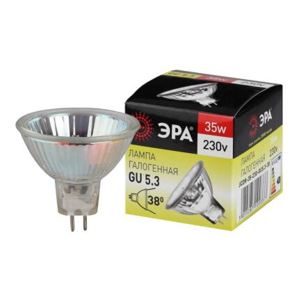 Лампочка галогенная ЭРА GU5.3-JCDR (MR16)-35W-230V-CL GU5.3 35Вт софит теплый белый свет