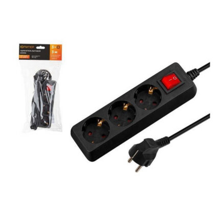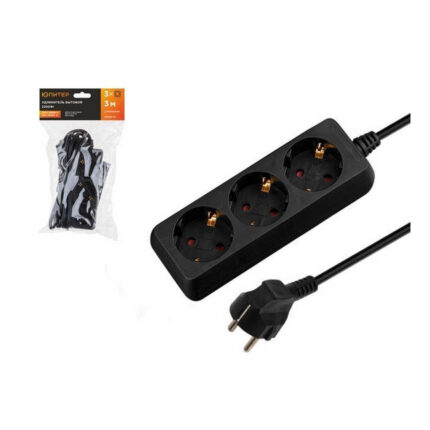 Удлинитель 3м (3 роз., 2,2кВт, с/з, выкл, ПВС 3х0,75) черный, Юпитер (ЮПИТЕР) (JP8104-21)